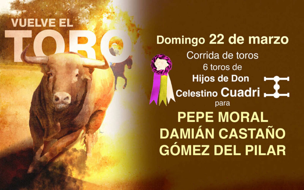 Pistoletazo de salida para la nueva temporada 2026 en la Plaza de Toros de Madrid. Para la cita inaugural de este domingo 22 a las 18h. están anunciados los matadores de toros Pepe Moral, Damián Castaño y Gómez del Pilar ante una corrida de toros de Cuadri.