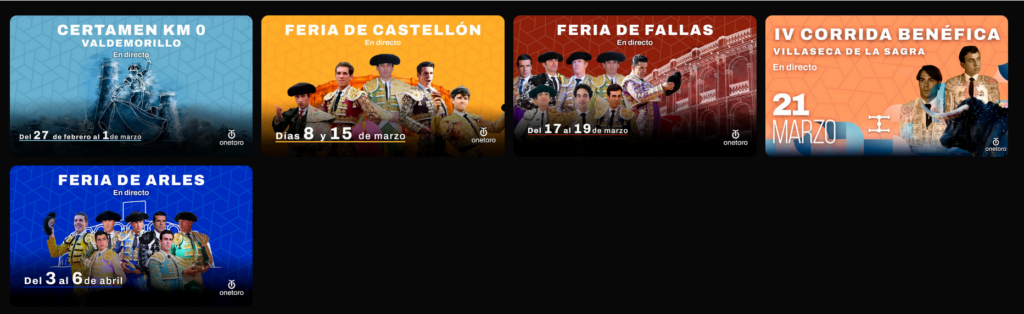 En abril, OneToro continuarán con La Feria de Arles completa, los días 4, 5 y 6 de abril incluyendo la corrida Camarguesa, y se encuentra en negociaciones para retransmitir la Feria de Abril de Sevilla.