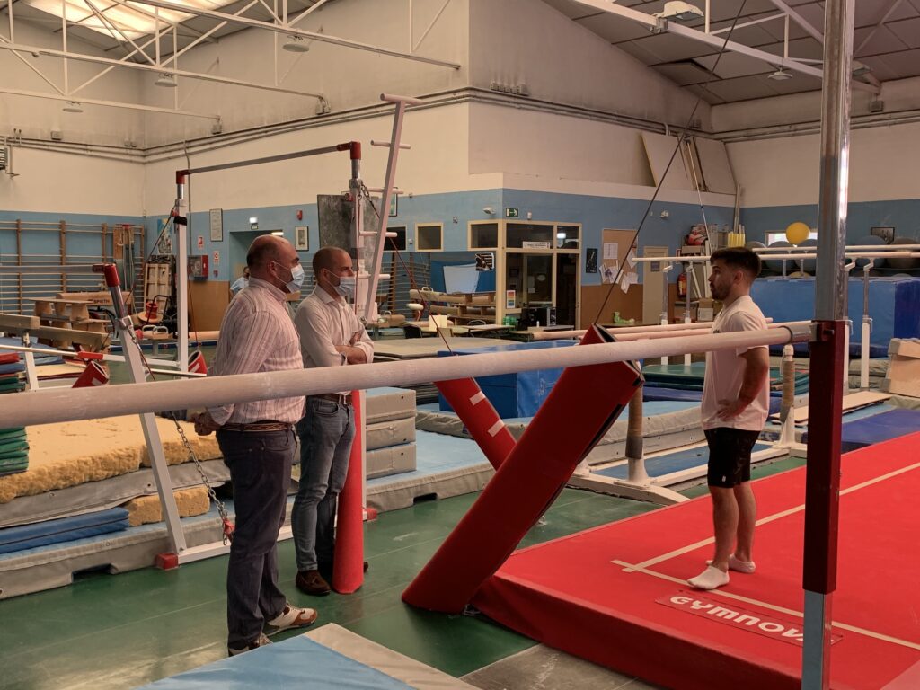 El regidor del Consistorio, José Luis Álvarez Ustarroz, junto con el concejal de Deportes, Eduardo González-Camino, acudió  a saludar al deportista del Equipo Nacional de Gimnasia que ha representado a España en tres mundiales, seis europeos, múltiples Copas del Mundo y unos juegos del Mediterráneo.  El alcalde  pudo comprobar además algunas de las medidas de higiene que se han llevado a cabo en las instalaciones para garantizar la salud de los deportistas.