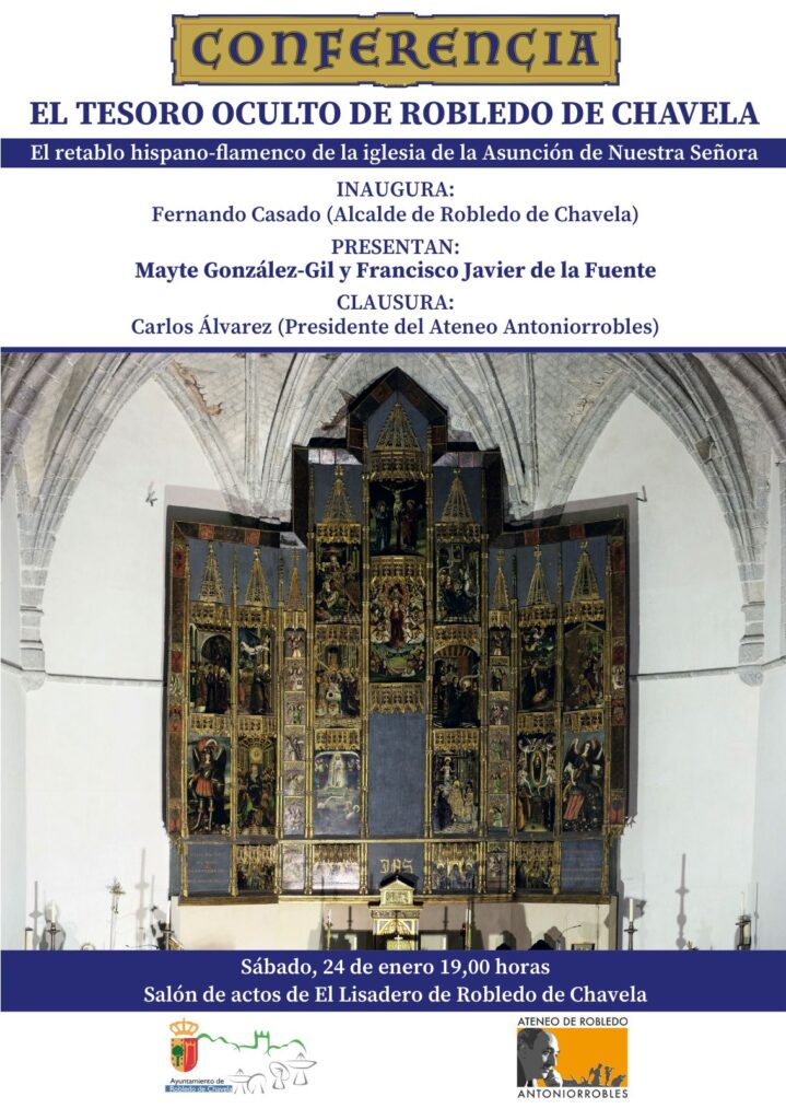 La ponencia versará sobre el extraordinario retablo hispano-flamenco de los siglos XV y XVI, auténtica joya artística y devocional. Compuesto por 34 tablas y dos lienzos añadidos en el siglo XVII, el retablo despliega un completo programa iconográfico centrado en la vida de la Virgen María, acompañado de escenas cristológicas, apostólicas y simbólicas donde se refleja la influencia flamenca en la pintura española, visible en el uso del óleo, el detallismo y la profundidad emocional de las escenas. Su lectura no es sólo estética, sino también espiritual y pedagógica ya que durante siglos el arte religioso plasmó las ideas y creencias de la época, relató la historia sagrada en las pinturas y esculturas de sus muros convirtiéndose en un potente y eficaz instrumento, necesario para difundir el mensaje cristiano a una población analfabeta.